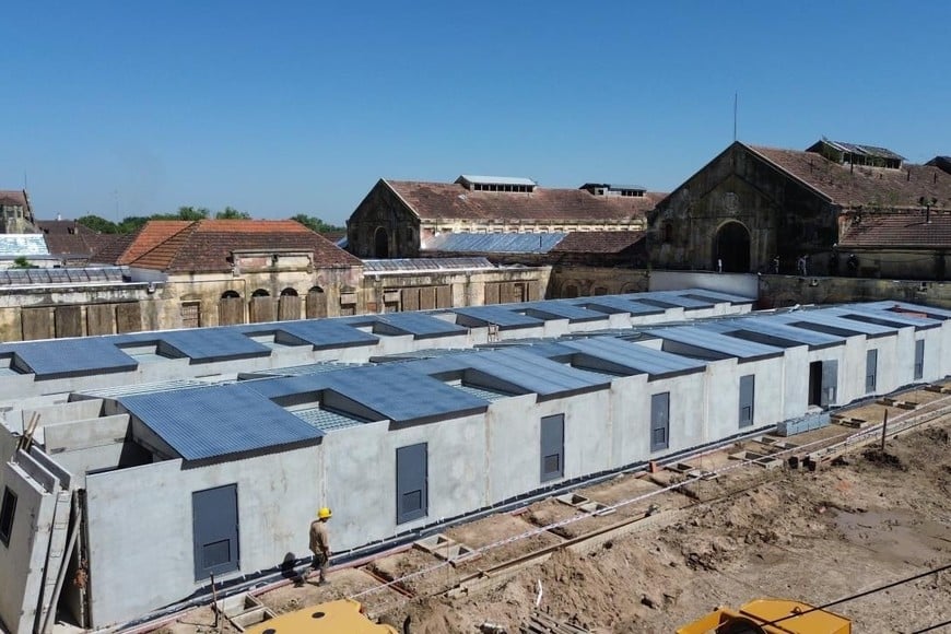 Las celdas incluyen cama de hormigón, ducha, inodoro y lavatorio antivandálico, estante, pileta de lavar en el patio y sistema de cierre superior con losa. Además, se ejecutan tareas de instalaciones eléctricas, colocación de artefactos y construcción de techos livianos.
