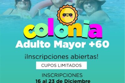 A partir de este martes 16 y hasta el 23 de diciembre se encuentran abiertas las inscripciones para la Colonia Adulto Mayor +60, en el marco de una continuidad uno de los tantos programas con que cuen...