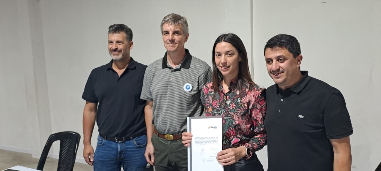 En la tarde de este lunes, el senador Leonardo Diana, junto a la subsecretaria de Acciones Institucionales del gobierno provincial, Virginia Vottero y el presidente del club Santa Paula, Cristian Balbo, brindaron detalles sobre la obra de dormis que está llevando adelante el club y además entrega de aportes económicos para la «Maratón Azul».