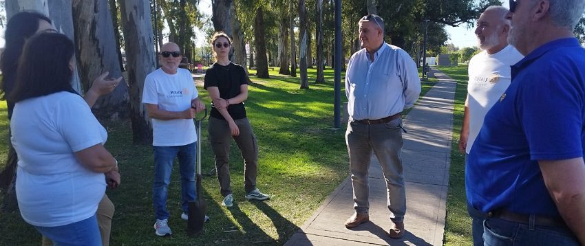 Díaz Colodrero explicó que «nos encontramos en el Ecoparque II «La Entrefina» con motivo de la visita del gobernador distrital de Rotary Internacional, de Distrito 4945, Leonel Delgado para la plantación de árboles. Ustedes saben que este distrito es binacional, él viene de Paysandú (Uruguay) y dentro de todas las actividades que hemos organizado para esta visita, coordinamos una visita a la municipalidad y reunión con el intendente Mariano Busso, reunión en el hospital con su director Cristian Stettler, almuerzo en la sede rotaria y plantación de árboles para colaborar con la parquización de este lugar. Posteriormente tendremos reuniones con Futuract Interact y Rotaract y la cena social con rotarios y autoridades locales.