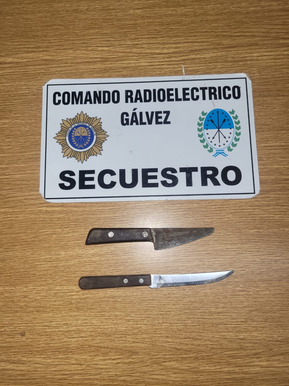 Se procedió a la aprehensión del hombre de 29 años de edad, oriundo de esta ciudad y el secuestro del birrodado en cuestión. Antes de proceder al traslado se realizó chequeo del rodado y además se secuestró del interior dos cuchillos con cabos de madera y hojas de metal. Se entrega procedimiento a la comisaría Segunda.