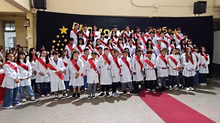 La comunidad educativa de la escuela N° 6034 «Poeta José Pedroni» realizó este martes su acto de promoción de los alumnos de séptimo grado en el patio del establecimiento. El reconocimiento además a los 25 y 50 años de graduados.