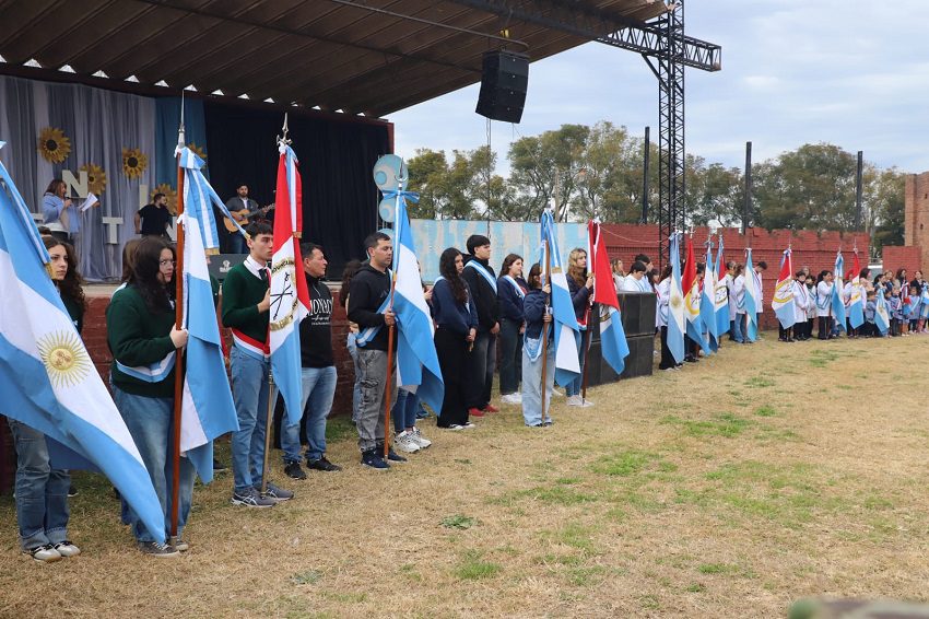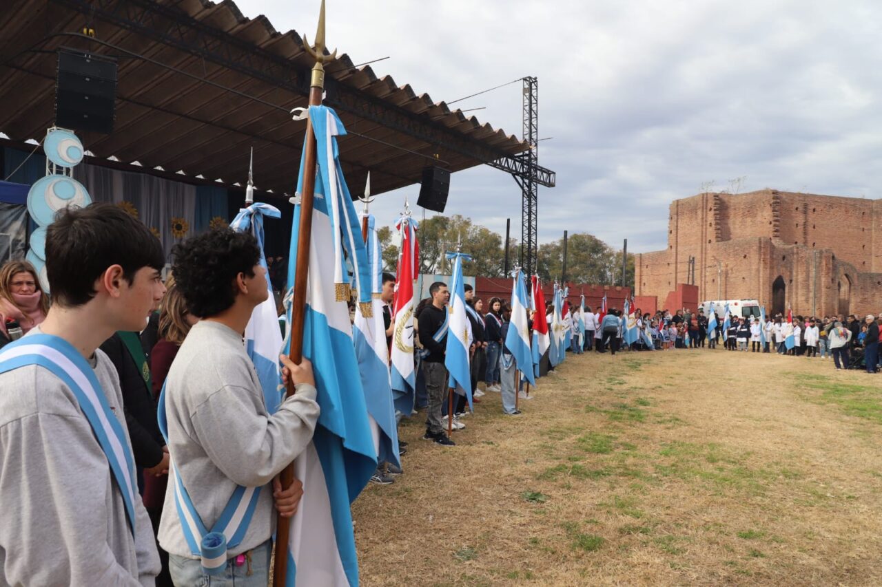 Posteriormente, alrededor de las 10:30 horas en la vieja iglesia inconclusa, se llevó a cabo el acto oficial con la presencia del intendente municipal, Mariano Busso y su gabinete, los concejales Pestarini, Rivello, Vázquez y Luna, alumnos de los establecimientos educativos, acompañados por docentes y directivos, representantes de instituciones de la ciudad y público en general. Se entonaron las estrofas del Himno Nacional Argentino a cargo de «Facu» Larrieta, palabras alusivas del intendente de la ciudad, de la docente Raquel Ottolini y la participación del grupo juvenil del área de folcklore del Liceo Municipal «Vicente Marcos Tavella» junto a sus profesores Lucía Bracco, Ricardo Lorenzatti, Nanci Serrano y Victoria Rosso.