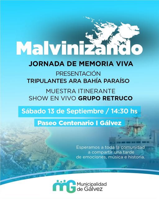 La municipalidad de Gálvez invita para este fin de semana a toda la comunidad a compartir «MALVINIZANDO», Jornada de Memoria Viva. La directora de Educación, Romina Iglesias da detalles.