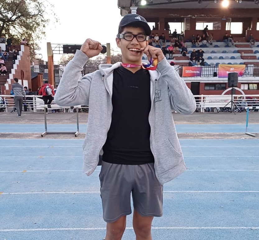 Atletismo sub 18 adaptado: Thiago Frey (Escuela 706-Larrechea) prueba salto en largo y 100 mts llanos; Leonela Pawlowsky (Escuela 201-Maciel) prueba lanzamiento de bala.