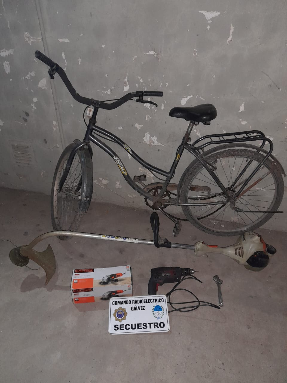 Durante las primeras horas de este domingo, en cercanías de la intersección de Av. 9 de Julio y Nazareno Rossi, circulaba en bicicleta un masculino de unos 22 años de edad y llevaba consigo una amoladora, un taladro, una motogüadaña y una llave francesa.